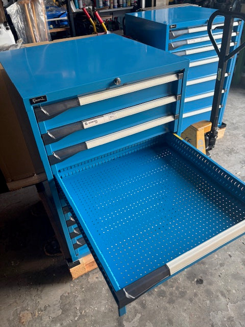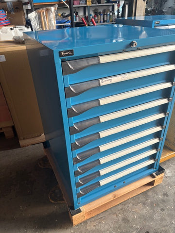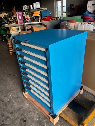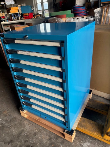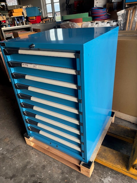 Specifikationer: med 9 Skuffer af 100 mm. Højde 1000 mm. Bredde 715 mm. Dybde 730 mm.